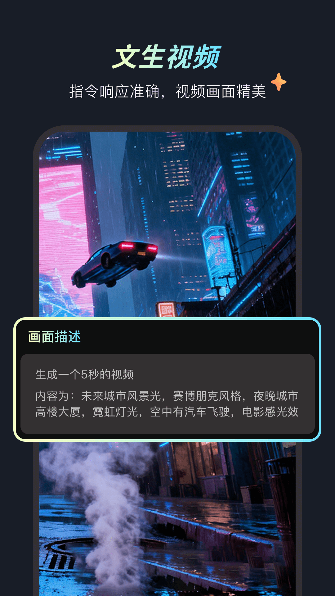 2、输入一段文字描述,即可生成包含复杂场景与特效的高清短视频,简化了视频制作的初始环节。