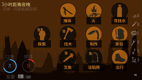 3、根据时间变化与体温数值,决定是否生火取暖,火堆需要持续添加燃料才能维持燃烧。