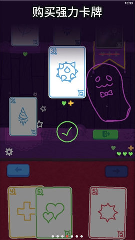2、在关卡中击败敌人会随机掉落卡牌,根据当前面临的敌人类型,即时拾取并更换卡组。