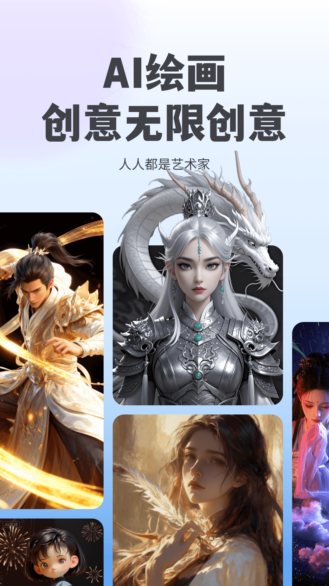 5、前往AI绘画区域,用具体描述词定义想要的画面风格与元素,生成图像后可直接下载使用。