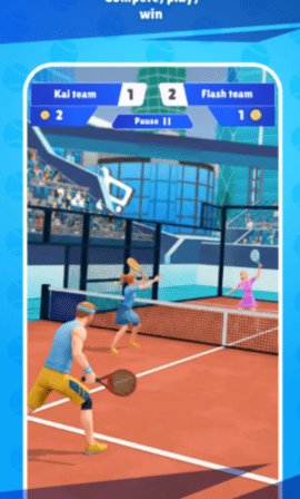 1、游戏提供了完整的帕德尔网球比赛流程,从发球到底线对攻再到网前截击,每个环节都遵循现实运动规则。