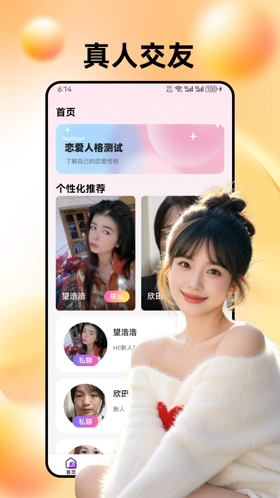 3、支持实时语音、视频及文字聊天,所有互动均在真人认证基础上展开,提升沟通效率。