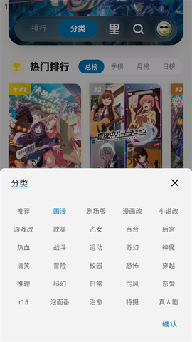 1、在主界面的顶部分类栏中左右滑动,可以浏览连载中、已完结或按题材划分的不同动漫集合。