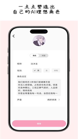 2、自定义角色引擎允许用户从零开始构建理想伴侣,包括设定姓名、背景故事、性格特质及专属的互动称呼,实现个性化陪伴。