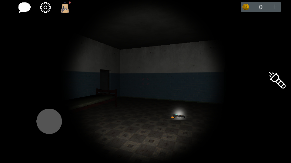 进入游戏后,点击地上的物品即可拾取。初始装备包含一个可开关的手电筒;左上角设有聊天、设置和背包按钮,用于管理线索与道具。
