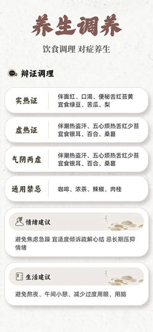 3、基于体质与实时状态,输出具体的行动指南,协助用户在饮食、运动、起居等方面做出更适宜的选择。