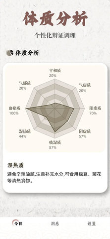 2、深度分析数据并关联中医体质分型,让用户从传统医学视角了解自身的健康特质与潜在倾向。