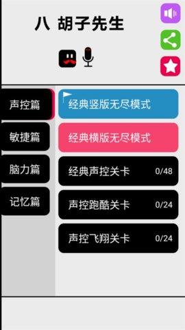 1、启动游戏后选择经典声控模式,保持设备麦克风开启,准备开始用声音控制八胡子先生。