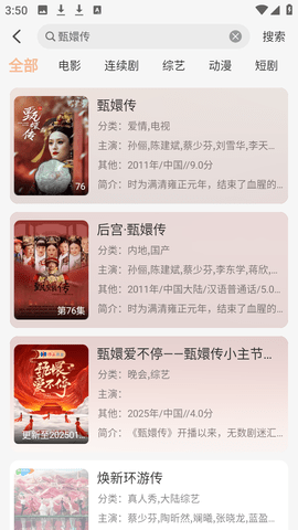 2、浏览系统返回的搜索结果列表,通常会显示来自不同源的多个可选链接,并标注清晰度等信息。