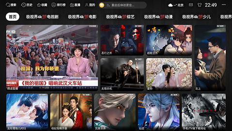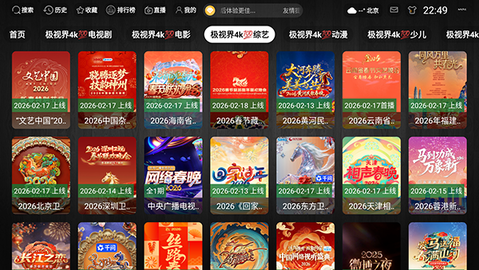 1、在电视上启动后,使用遥控器方向键浏览首页推荐的不同影视分类板块。