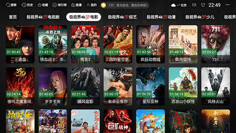 2、按下遥控器确认键进入任一分类,可纵向滚动查看该类别下的具体影片列表与海报。