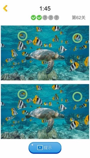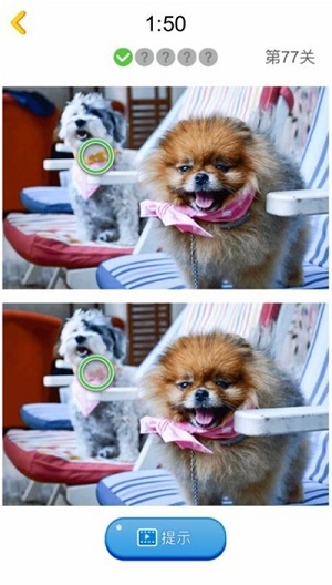 5、遇到难以发现的差异时,可点击屏幕上的提示按钮,系统会高亮显示一个随机差异点。