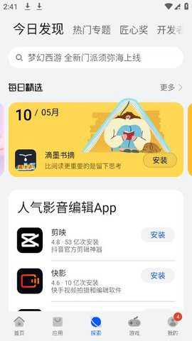 2、系统会分析用户的安装与浏览记录,从而在首页展示可能符合个人偏好的内容列表,提升了发现的效率。