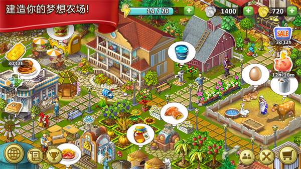 3、用早期收入建造鸡舍或牛棚,购买幼崽进行饲养,记得每天收集鸡蛋并为奶牛挤奶。