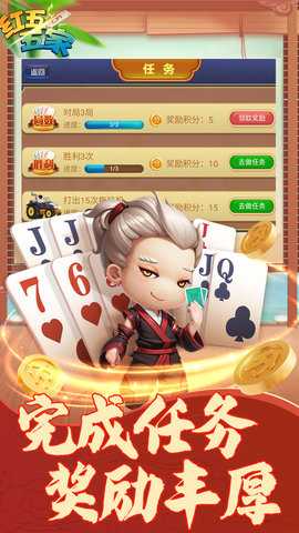 畅唐红五五家是一款流行于浙江台州黄岩等地的扑克牌游戏,属于升级类玩法,通常需要五位玩家共同参与,游戏以红五为最大牌张,级牌固定为2,每一局由首位亮牌的玩家担任庄家,庄家在叫主环节后可以抓取底牌并进行替换,随后通过指定特定牌张来寻找本局的队友,,游戏支持单张、对子、拖拉等多种牌型组合,当所有手牌出尽后结算分数,若最后一轮由抓分方获胜,则触发抠底规则,底牌分数将翻倍计入。