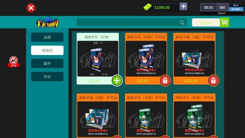 2、初始资金用于采购第一箱卡牌,后续的盈利需要精打细算以用于补货与升级。
