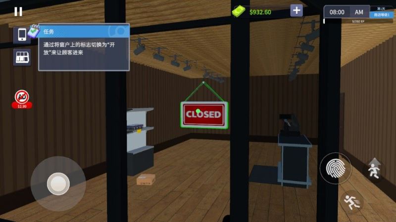 7、将橱窗上的招牌从“Closed”切换为“Open”,正式营业。