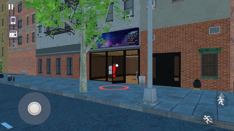 2、左侧虚拟按键控制角色移动,右侧控制视角、奔跑等操作。