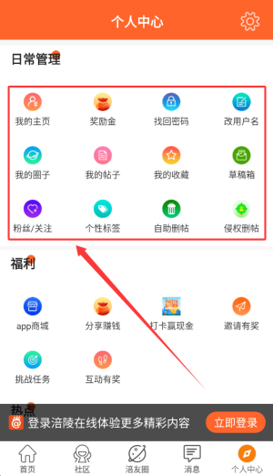 4、个人中心:管理自己发布的帖子、收藏感兴趣的内容、查看互动消息。