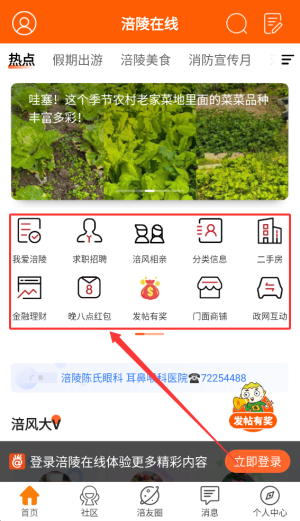 3、首页整合了本地生活、求职招聘、分类信息、二手房、理财服务以及发帖奖励等实用功能。