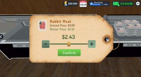 5、将处理好的商品摆上货架并设定价格,等待虚拟顾客前来购买以获取资金。