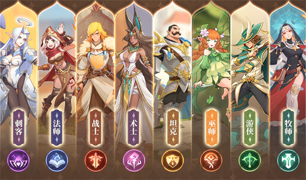 分战士、法师、祭司、游侠四大职业,搭配六大阵营克制关系,激活职业、阵营羁绊,获取属性加成。