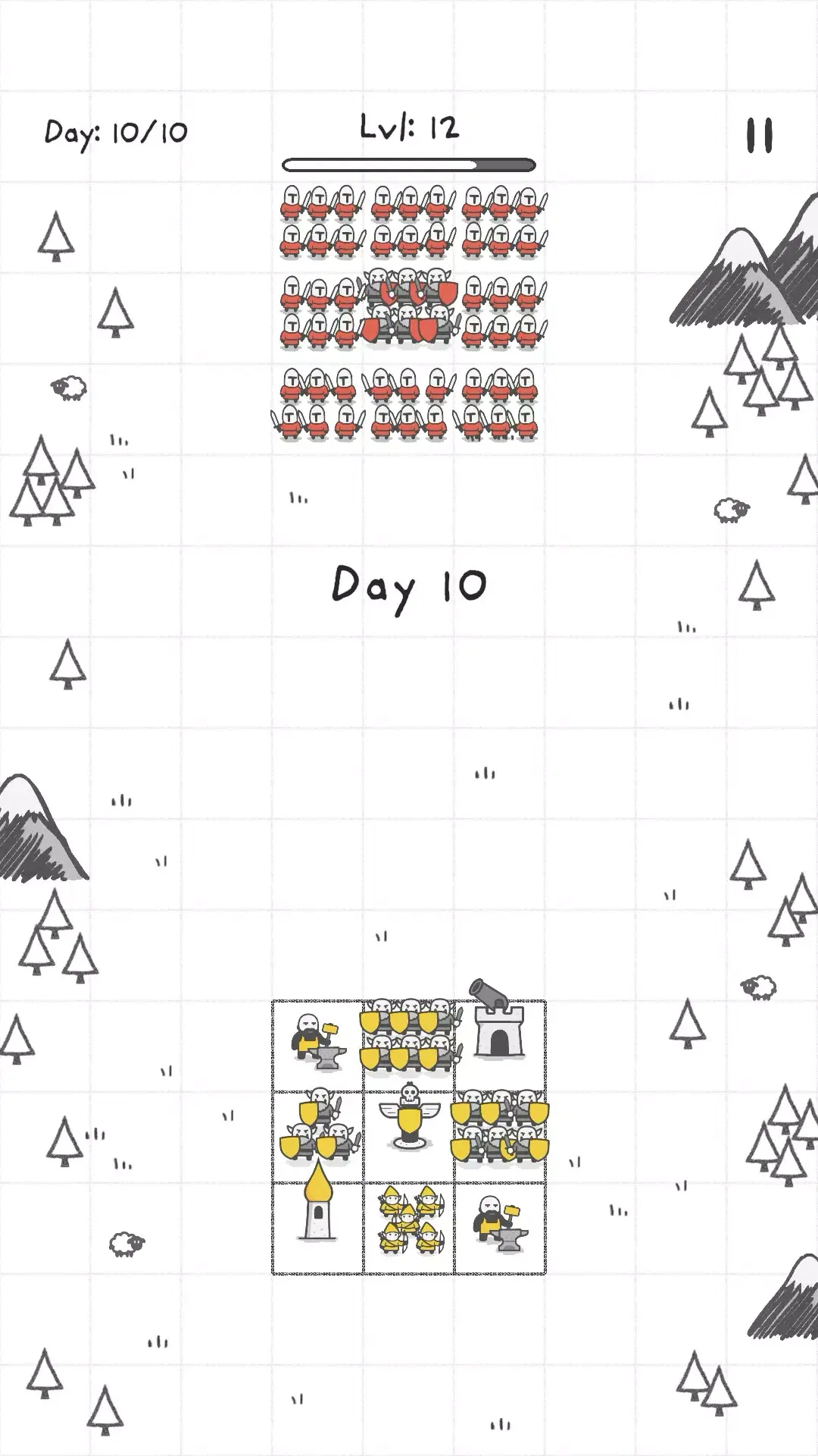 2、根据敌人进攻的路线和类型,将已有的单位拖放至城堡前的合适位置,他们会自动进行攻击。