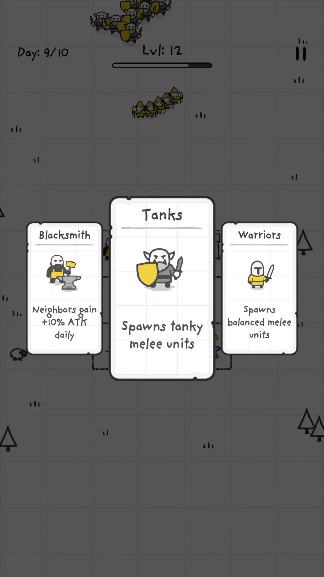 1、开局时从有限的几种基础单位里挑选一种作为初始阵容,例如选择坚固的持盾卫士来稳固前线。
