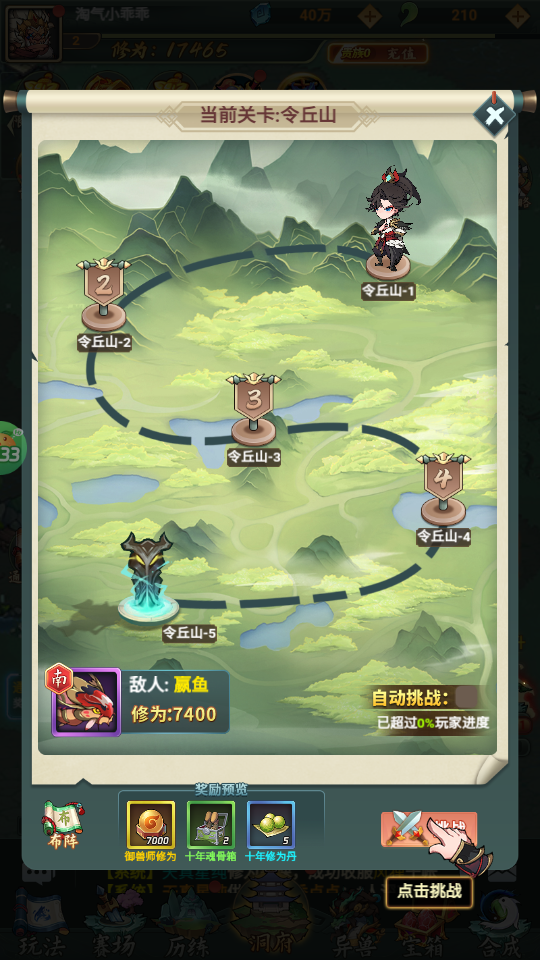 5、获得异兽后即可开始关卡挑战,点击挑战;