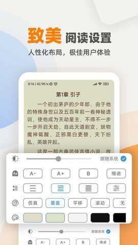· 阅读设置:调整字号大小、行间距、翻页方式,打造最舒适的专属阅读环境。