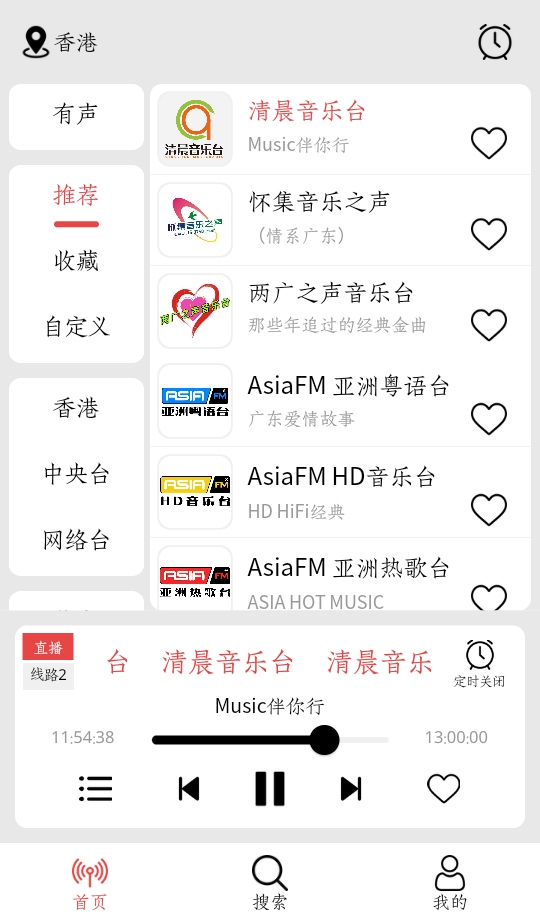 3、独特的自定义电台功能,将喜欢的网络电台流媒体地址添加进来,就能像收听普通广播一样随时播放。
