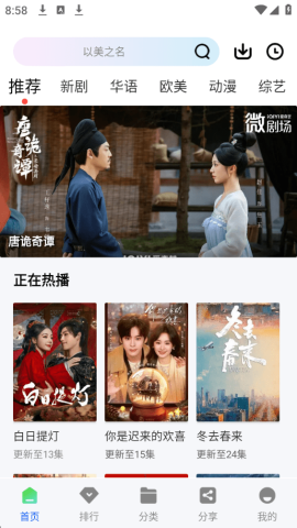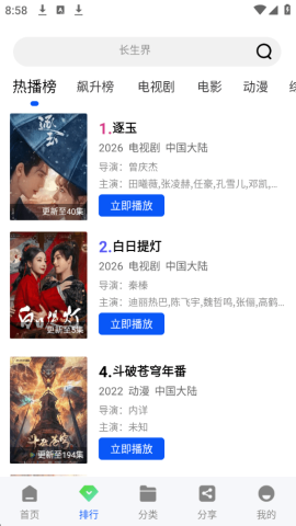浏览分类:通过首页的“电影”、“电视剧”、“综艺”、“动漫”等分类标签,可以发现更多热门或新上线的资源。