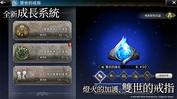 歧路旅人大陆的霸者国际服是一款由Square Enix正版授权的像素风冒险策略手游,为玩家呈现奥鲁斯特拉大陆的全新史诗。在这片被神之戒指力量搅动的大陆上,三位暴君窃取了神力,将世界推向混乱边缘。作为被命运选中的旅人,你将集结伙伴,踏上夺回戒指、恢复和平的征途。游戏以独特的HD-2D画面风格,将精致的2D像素角色与充满纵深感的3D场景巧妙融合,配合西木康智操刀的现场演奏级配乐,营造出深邃而迷人的幻想氛围。玩家可以招募多达八种不同职业的旅人,组建最多八人的队伍,在充满策略深度的回合制体验角色交织的命运与波澜壮阔的叙事。