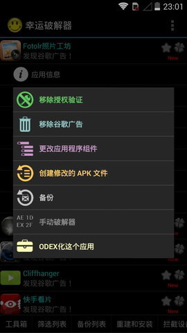 1、利用Lucky Patcher可以从apk文件里面去删除相应的连接,这个功能是可勾选的;